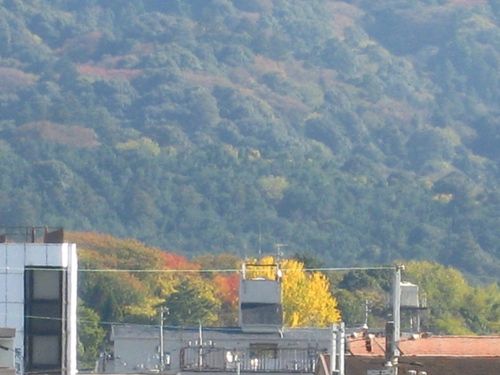 ベランダから真っ直ぐ東を見るとこの黄葉が見えます。