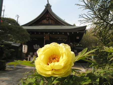私は、黄色い牡丹と言えば、ここ御霊神社を思い出します。