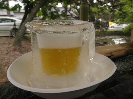 さらに驚いたのが、氷のグラスに注いだビール(無料配布)