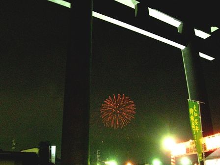 さて、これが撮りたかった大鳥居と花火のコラボ写真