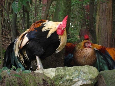 ニワトリと言うか、色鮮やかな尾長鶏です。