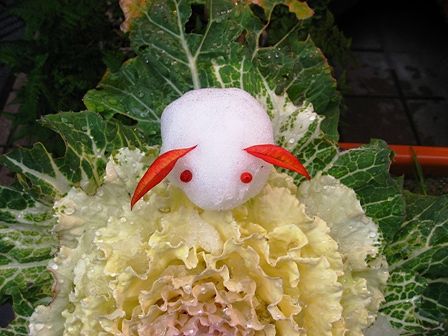 お店の前にこんな可愛い雪ウサギが置いてありました。