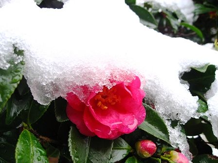 雪を被っても健気に咲く寒椿