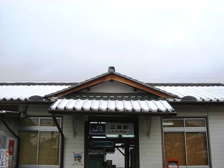 JR三輪駅の駅舎。瓦の屋根だったなんて、今まで気付きませんでした。