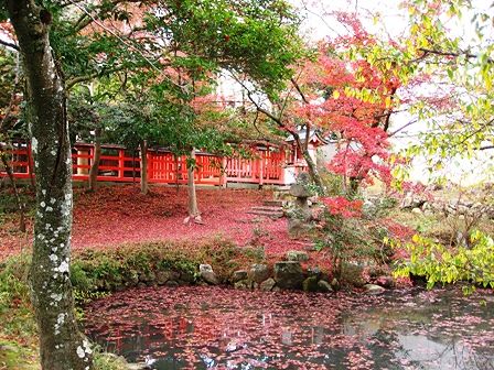 境内の池の散り紅葉です。