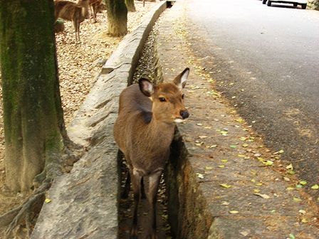 奈良公園は広いのに鹿さんは狭い所が好きですね。
