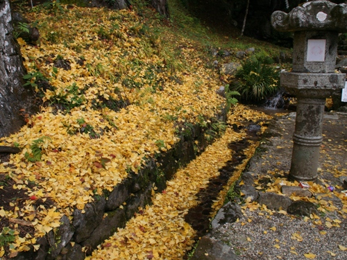 真っ赤な紅葉だけでなく、イチョウの黄葉もあります。