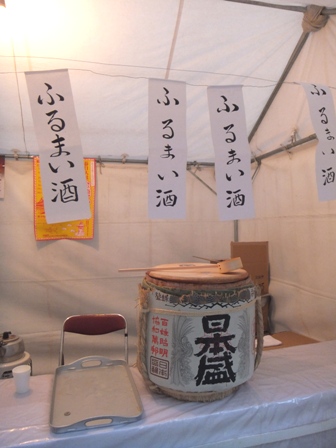 参道を歩いて、境内に入るとふるまい酒がありました。