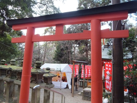 鳥居横に桜が咲いていました。ちょっとわくわくしますね。