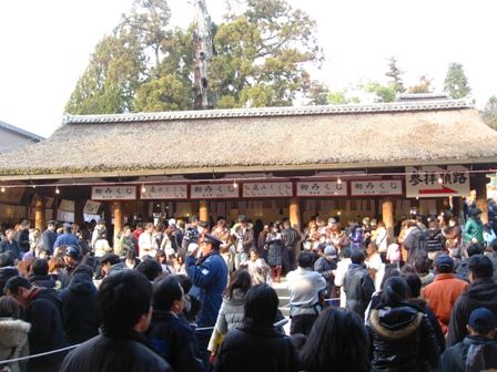 こちらは、本殿前。もっとすごい人です。でも、例年よりはうんと少ないように思いました。