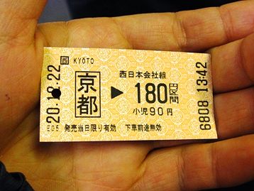 それではスタートです。京都駅で180円の切符を購入します。