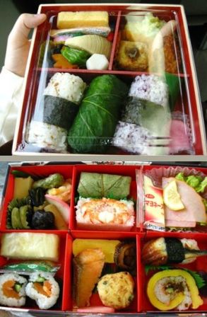 京都駅で買った駅弁を車内で食べました。上は次女、下は私