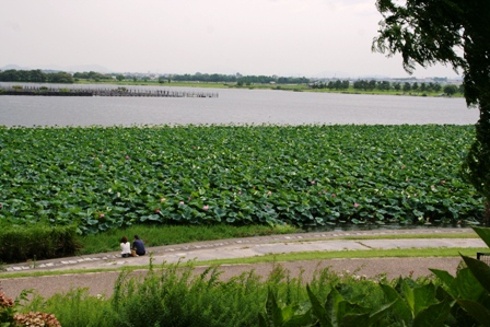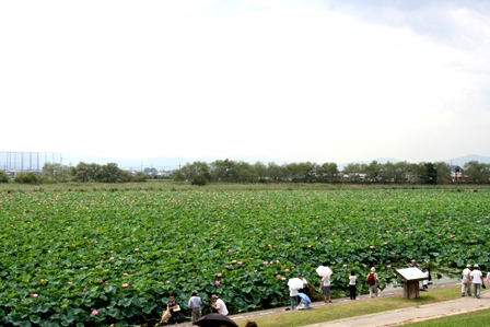 琵琶湖の南に烏丸(からすま)半島と言う所があり、そこの入江に蓮の群生があって、日本一の大きさだそうです。とにかく、私の試練は早起きと暑さとの戦いです。蓮の群生を見る為には頑張るしかありません。