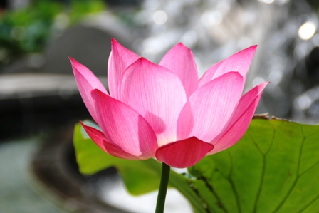噴水を借景にしたピンクの蓮の花