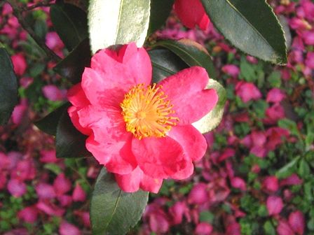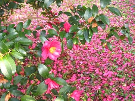 立寒椿は散った後も楽しませてくれますね。ピンクのじゅうたんがとっても綺麗.。