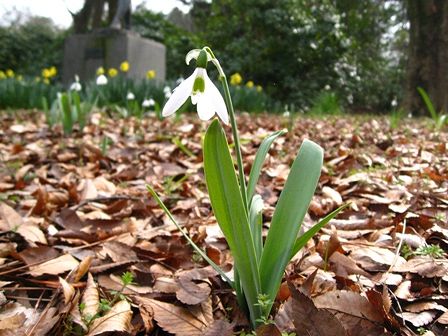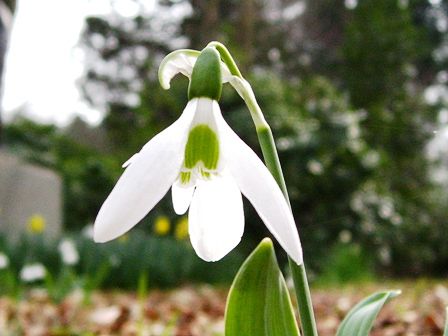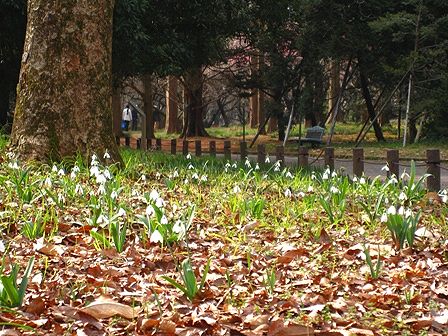 スノードロップは、噴水の近くのスイセンが咲いてる所にたくさん咲いていましたよ。