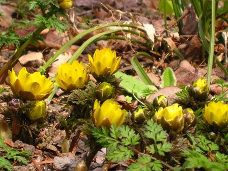 節分草、福寿草、梅花黄連、すべてキンポウゲ科のお花です。