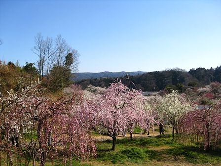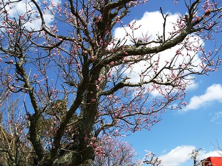 枝垂れ梅が結構たくさんあるようですね。青空にとても映えています。