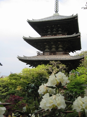 最後に西南院(さいないん)に入りました。ここはぼたんよりしゃくなげがメインです。しゃくなげはもう満開ですごくきれいでした。ぼたんも結構咲いてました。なんと言っても展望台があるのが、嬉しかったですね。西塔が目の前に見えて感激しました。そしてお庭が奥にあるのですが、真ん中に池がある良くあるお庭なんですが、山の方からも見下ろせるし、お部屋からも見れるんです。しゃくなげも入り口には鉢植えばかりだったので、ちょっと残念だと思っていたら、奥の山にしゃくなげが一杯咲いていました。お庭を拝見しながら、お抹茶を頂きました。お菓子付きで400円でした。真ん中のお庭には、色取り取りの芝桜が生えていて、とても可愛かったです。私個人的には、ここが一番良かったなと思います。
