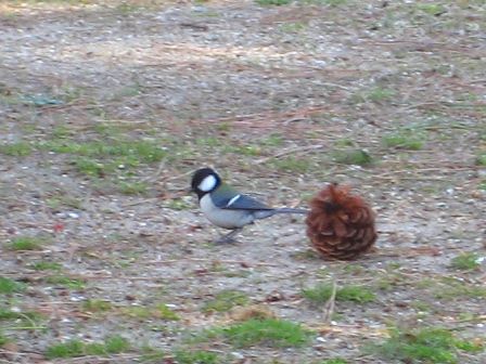 シジュウカラと松ぼっくりのコラボも可愛いですね。思わず顔がほころびました。