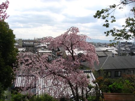 立派なしだれ桜 町並みが見下ろせて素晴らしい景色です。