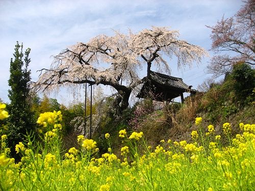 菜の花に枝垂れ桜の