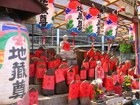 左側に行くと佐保川の桜並木があります。そこには地蔵尊があります。