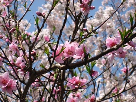 濃いピンクの桜の木もありました。