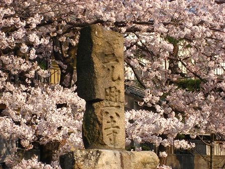 元興寺の石碑と桜