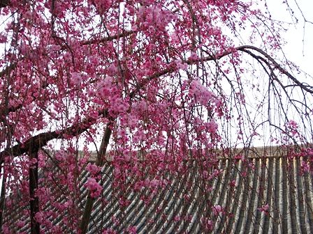 三条通りにある浄教寺の紅しだれ 満開まであともう少しです。