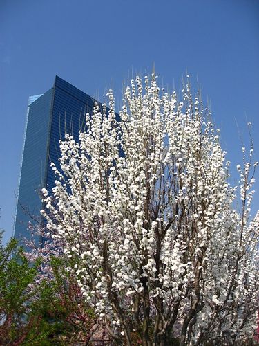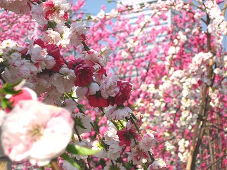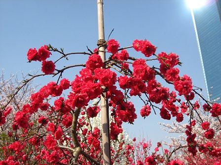 ビルより高い桃の花