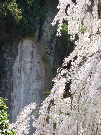 磨崖仏としだれ桜