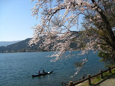 のどかにカヌーをしてる人も。湖上の花見も素敵でしょうね。