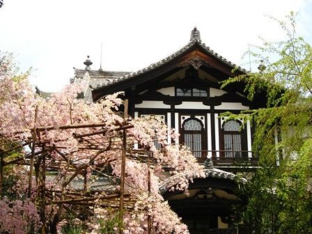 仏教美術資料研究センターのしだれ桜 右側の早咲きのしだれは終わって、