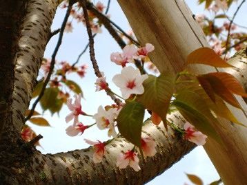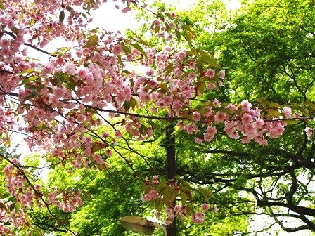 青々とした葉っぱを借景にすると桜のピンクも映えますね。
