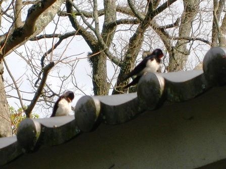 ツバメの夫婦が一生懸命巣作りをしていました。