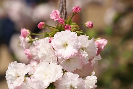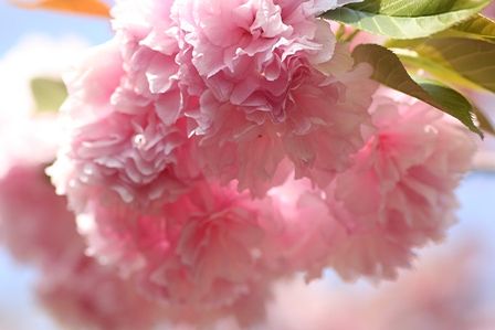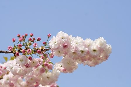 うすいピンク牡丹のような八重桜がパーッとひろがったと思ったら