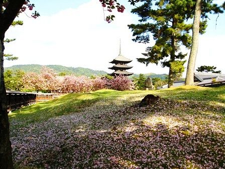 いつも南円堂の藤が満開になって、かなり遅くに八重が満開になりますよね。