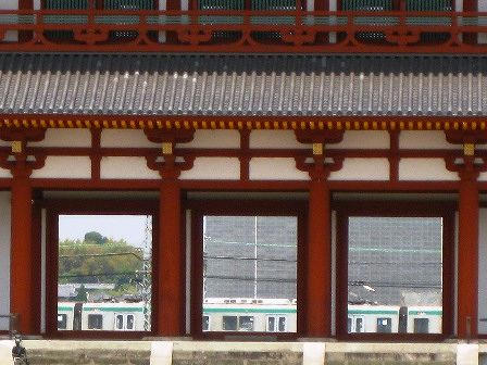 電車が通過する場面は本当に一瞬、朱雀門の中を走ってるみたいに