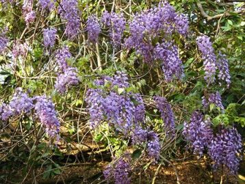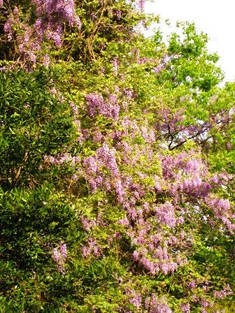 飛火野の奥の自生の藤 太陽の光のせいでしょうか。