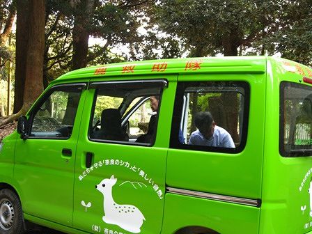 奈良公園を巡回してる奈良の鹿愛護会の車