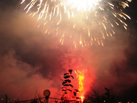 四枚目は娘の作品で、例によってオチです。火事現場ではありませんよ。打ち上げ現場はあんな感じで炎と煙ですごいのです。良くそんな所の写真を撮ったと感心してます。