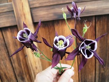 紫色のオダマキ、ほんと変わった色でしょ。