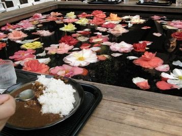 テーブルに水槽があって、お花が浮かべてあります。