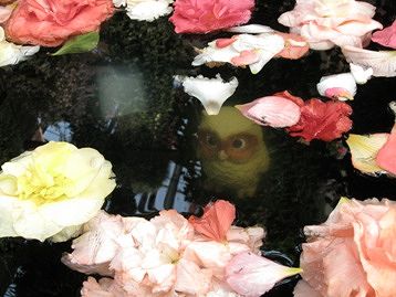水の中に黄色いフクロウがいて、びっくり。