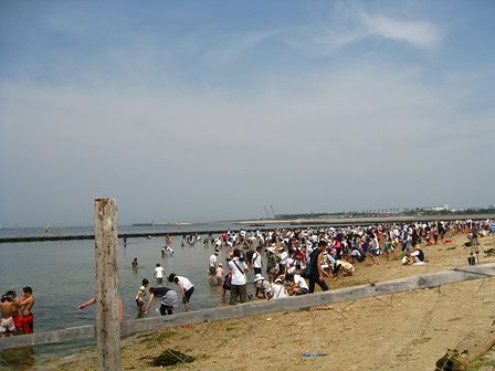 ところが、潮干狩り場は人が一杯です。
