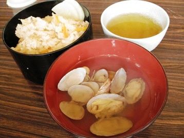 先に食堂でアサリ汁とアサリ飯を頂きました。