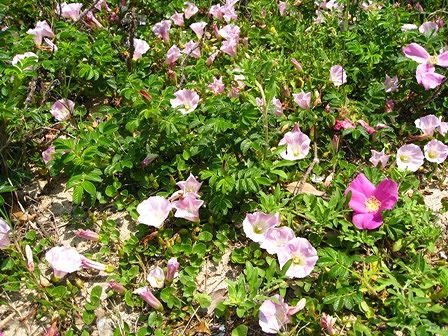 ハマヒルガオやハマナスが咲いていたり、