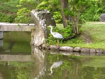 奈良県新公会堂前の池のアオサギ