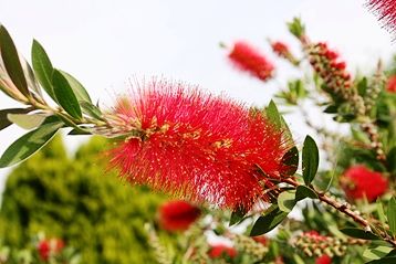 ブラシの木が満開 これは、駐車場の入り口で咲いていました。